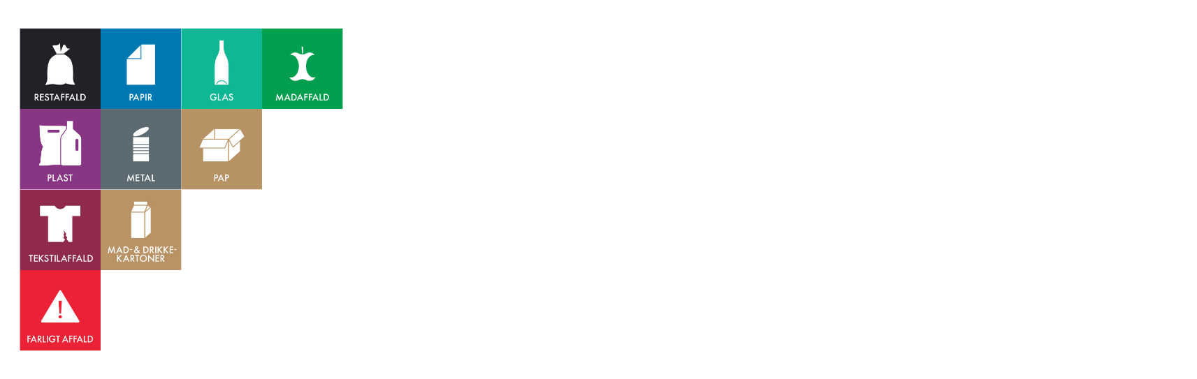 Fra d. 31. december 2022 er det et krav, at arbejdspladser sorterer husholdningslignende affald efter de samme sorteringskriterier som private husholdninger. Du kan læse mere om affaldssortering ved erhverv på miljøstyrelsens hjemmeside.