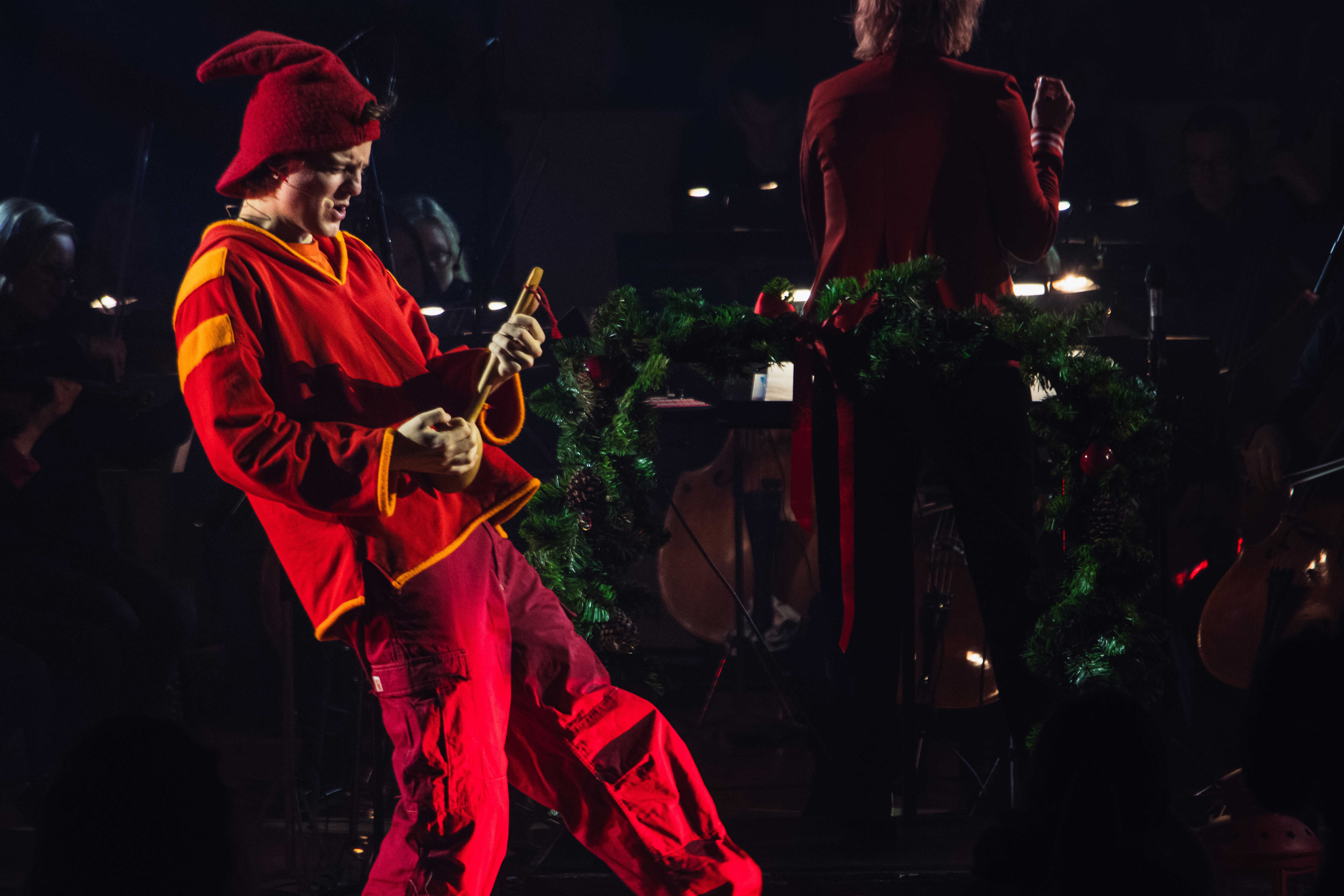 Julekoncerten tog nemlig sit udgangspunkt i juleklassikeren om ”Pyrus – Alletiders Nisse”. Publikum oplevede nisserne Pyrus, Kandis og Gyldengrød, der tog på rejse gennem bøger, sange, teater og film for at finde svaret på, hvad en nisse er til lyden af symfoniorkestrets intense musik og elevernes energifyldte stemmer og koreografi.
