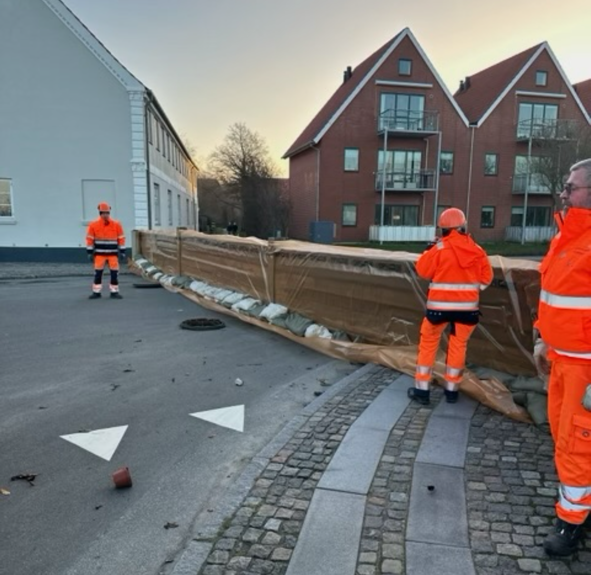 Derfor spærer vi nu af ved Vestergade i Bogense (vejadgangen til havnen via Kirkestræde holdes åben). Vi forventer at vandstanden topper omkring middagstid i dag.