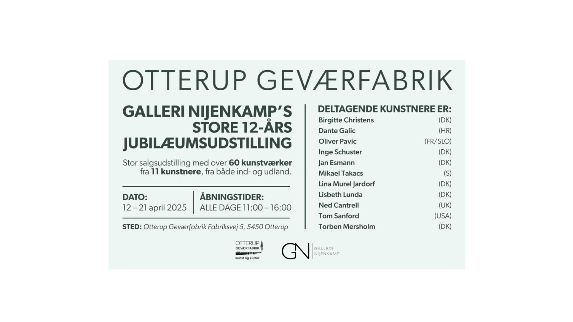 Udstillingen kan opleves den 12.-21. april 2025 på Otterup Geværfabrik, Fabriksvej 5, 5450 Otterup.